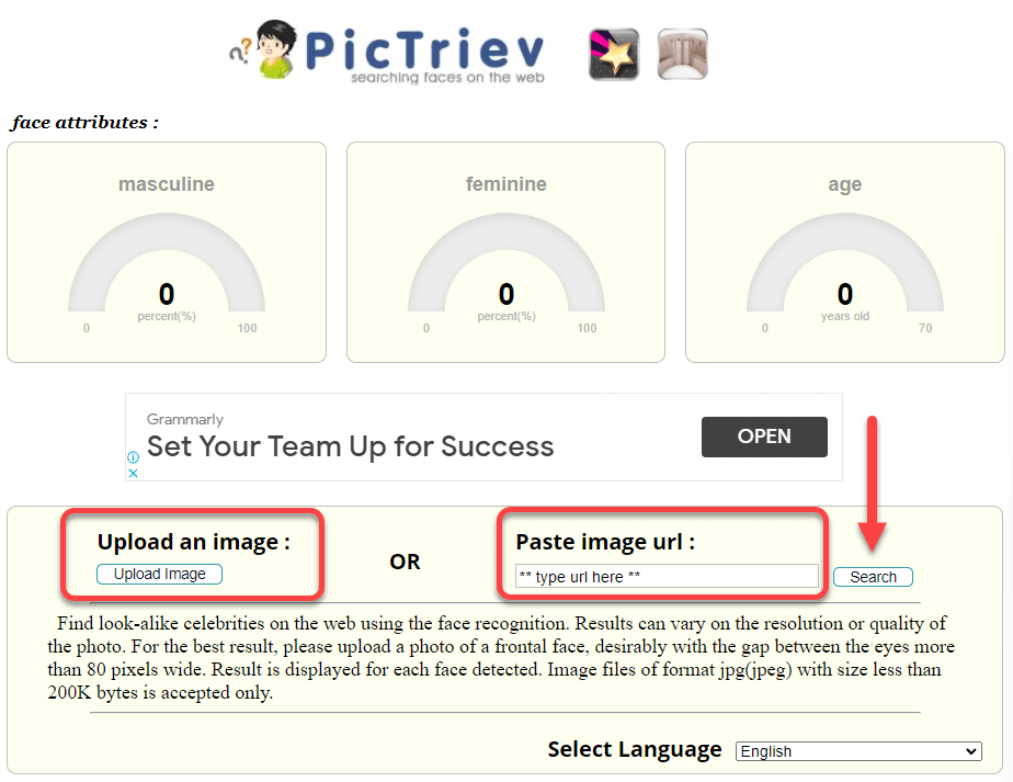 However, PicTriev’s algorithm does have a meter that tries to determine how masculine or faminine a person looks in the photo and estimates their age. To perform a search, you’ll need an image that’s in jpeg format and less than 200KB in size.