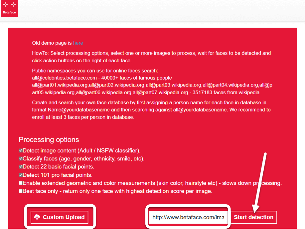 Betaface is similar to PicTriev. Like all face recognition search engines, you upload your pic or insert an image URL. The search engine will then try to identify similar photos based on your facial characteristics.
