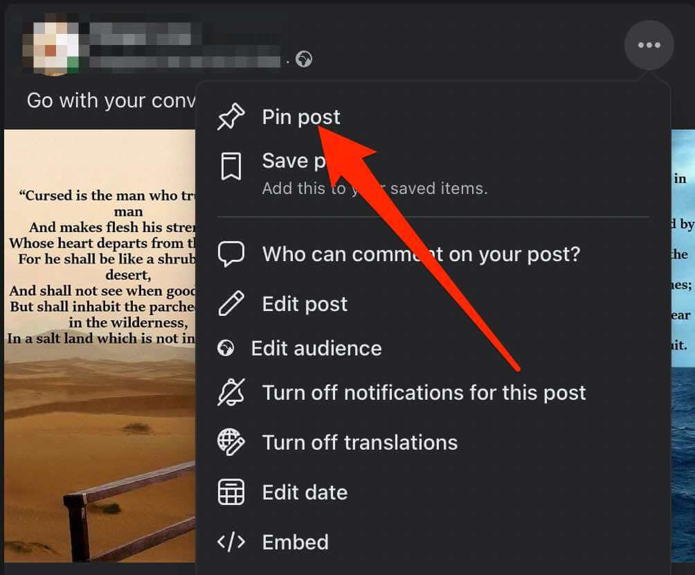- Find the post you’d like to pin to the top or create and publish a new post and then select More.