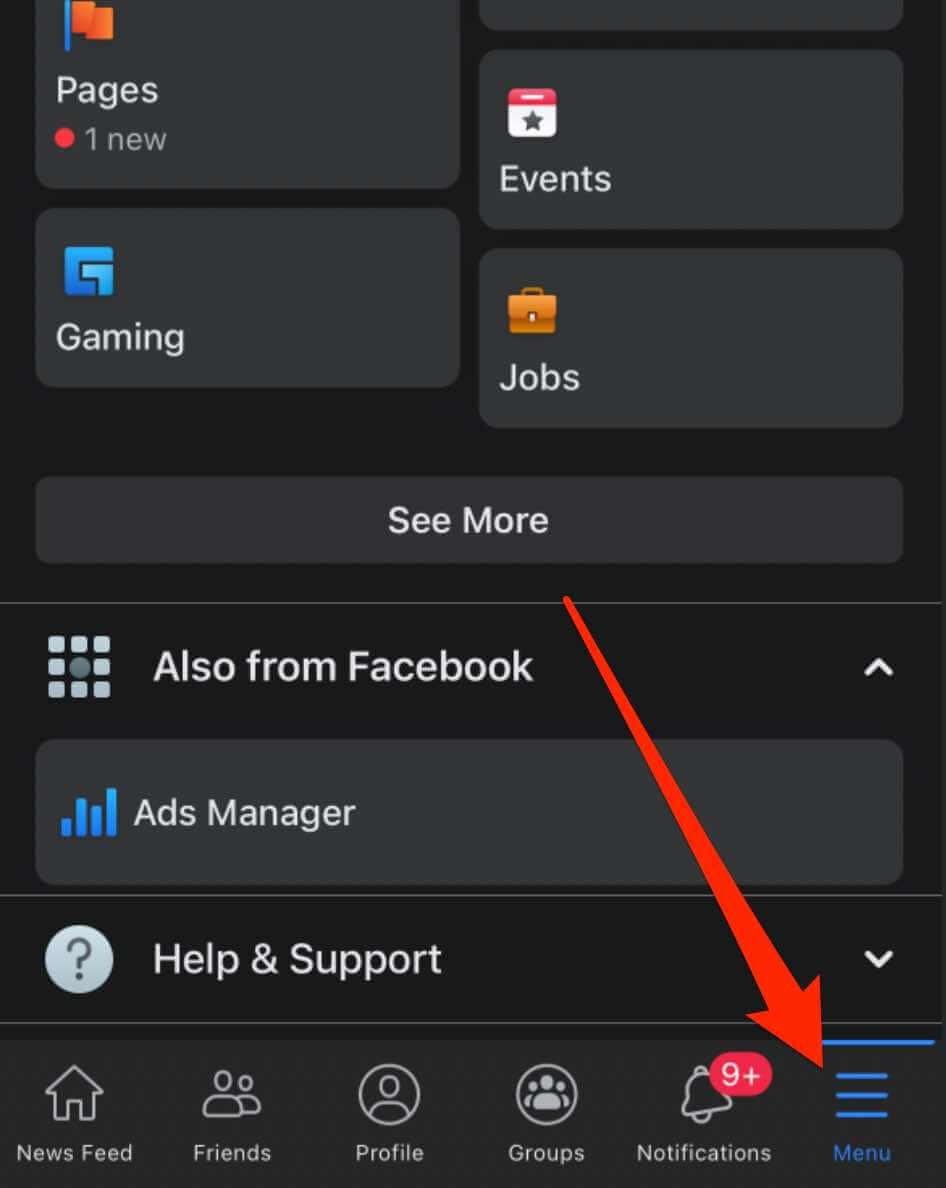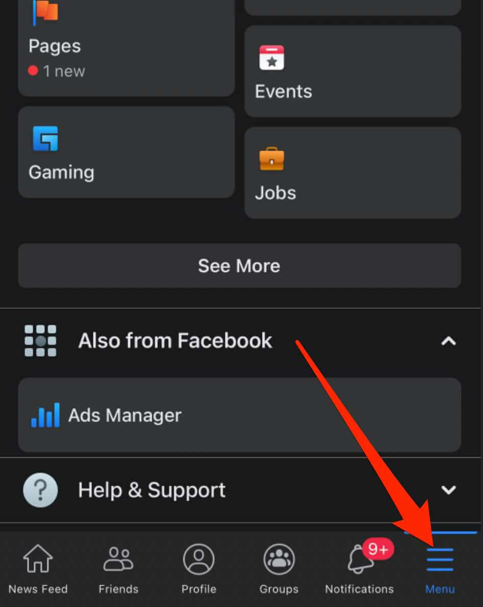 - Launch the Facebook app and tap the Menu (three lines) in the bottom right of the screen.
