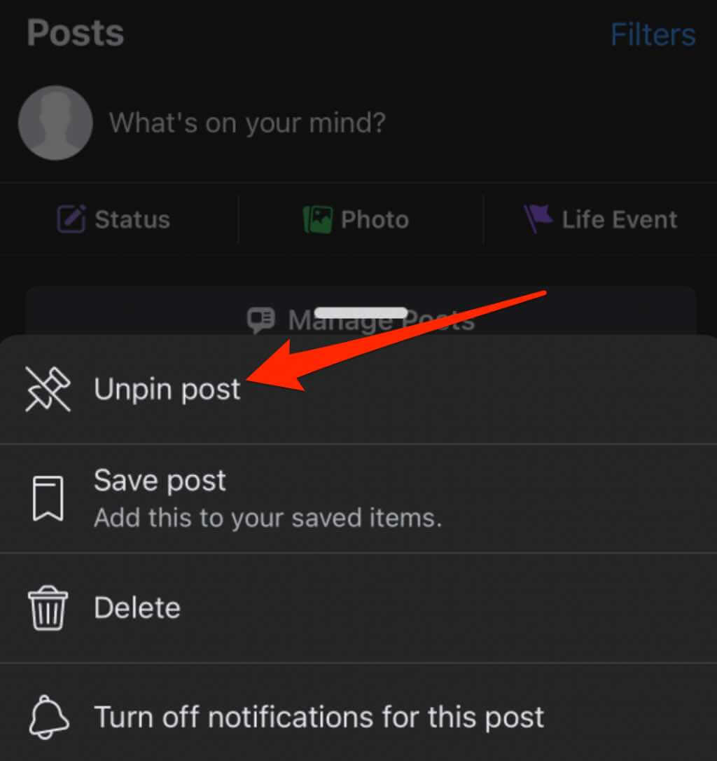 - To unpin the post from, tap More next to the post, and then tap Unpin post.