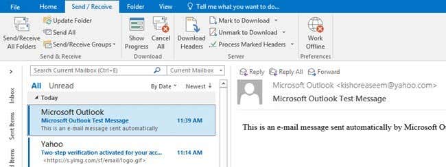 Now click on the Send/Receive tab and click the Send/Receive All Folders button. All of your email should start to load into Outlook.