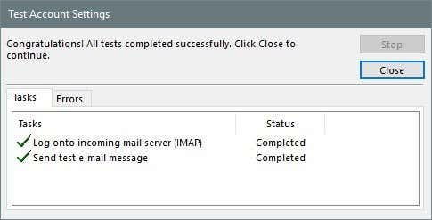 It will try to log into your email server and then send a test email message. If everything is configured correctly, you should see some green checkmarks. If not, go back and make sure you typed in everything correctly, including your password.