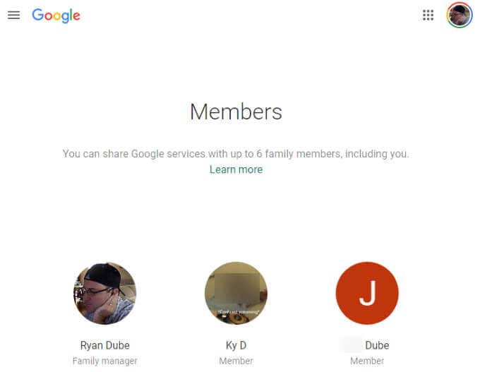If you scroll down the main Google Families page, you’ll see a list of all of the Google services shared among all family members.