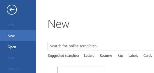 Luckily, you can still find some of these Microsoft templates, but you have to perform the search from within Word itself. To do this, click on File and then click on New.