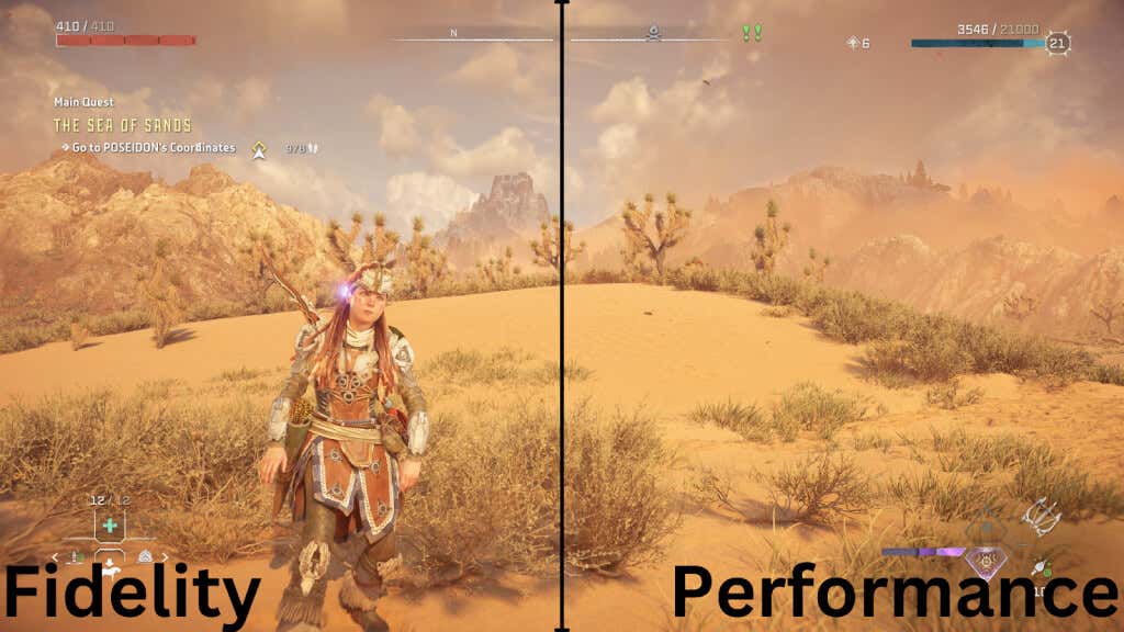 But, some aspects of resolution mode may be visible at any distance since you can set other settings (such as lighting quality or foliage density) to higher levels in quality mode. However, higher frame rates are always visible at any distance and affect other aspects besides visuals, specifically how snappy the game feels in response to your input.