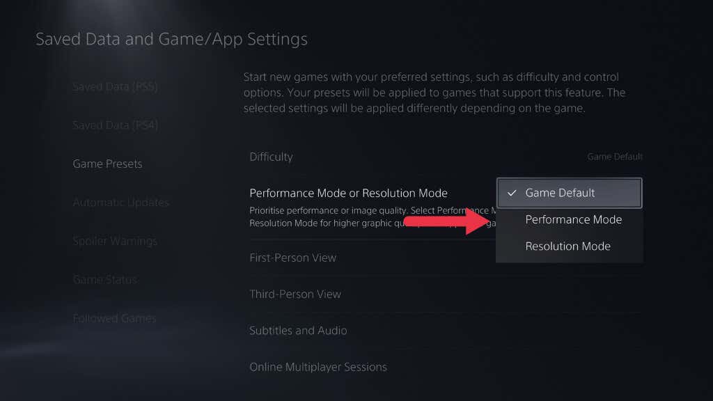 Note: This setting only tells the PS5 what you generally prefer; it doesn’t prevent you from manually switching to a different mode within a game’s menus. So you can override this on a per-game basis.