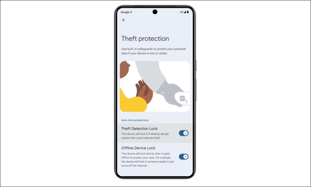 The Theft Detection Lock system uses artificial intelligence to detect theft-like motion on Android devices. Say a user’s phone gets snatched [from their hands] by someone trying to run, drive, or bike away. The AI-powered theft detection system sets off “Offline Device Lock” if it senses a snatch-and-run.