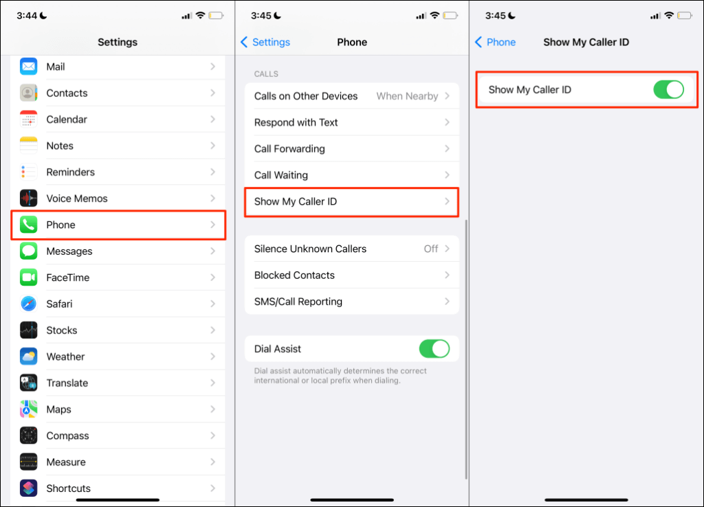 On iPhone, go to Settings > Phone > Show My Caller ID and toggle on Show My Caller ID.