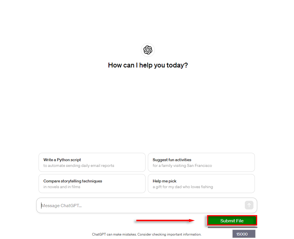 2. Load the ChatGPT website and press Submit File – this is the button added by the extension.