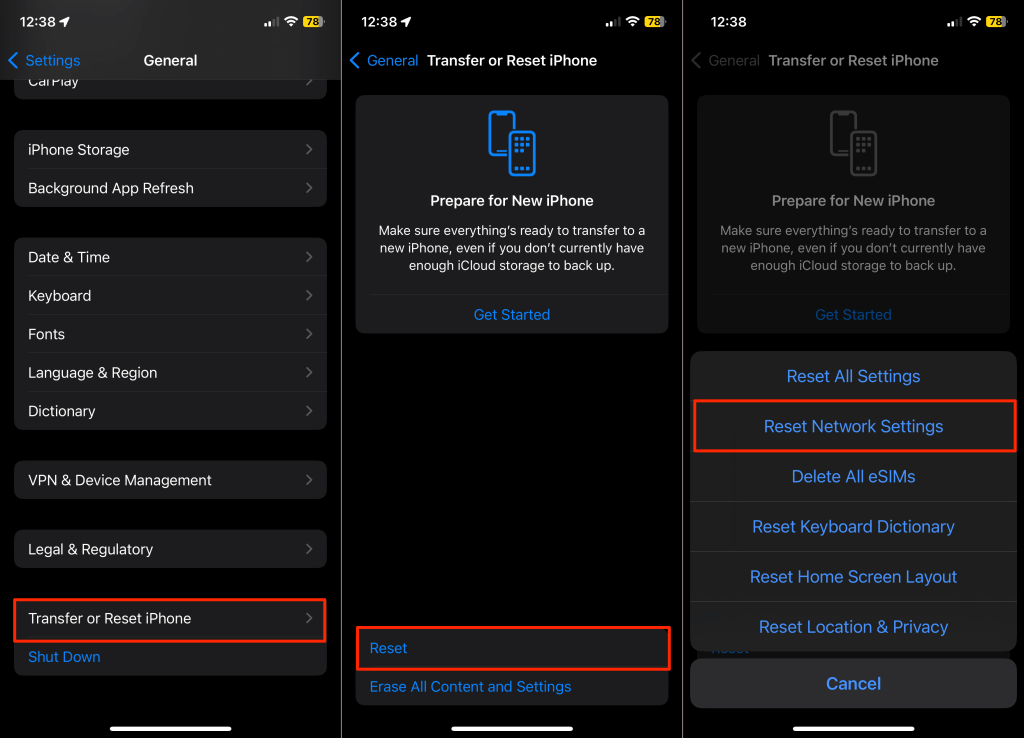 On iPhones and iPads, go to Settings > General > Transfer or Reset iPhone/iPad > Reset and tap Reset Network Settings.