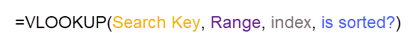 In the image below is the VLOOKUP function’s syntax. This is how the function is laid out, regardless of where it’s being used.