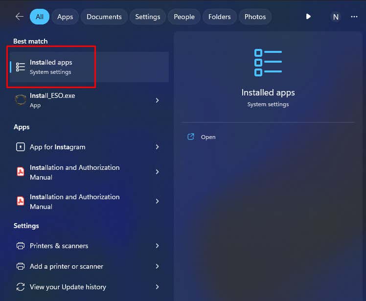 - Type Installed apps in your Windows search bar to access them.