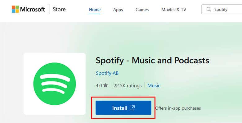 - Go to the Microsoft Store and install Spotify from there.