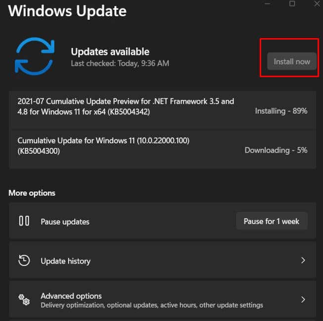 - If any updates are available install them by clicking Install Now button.