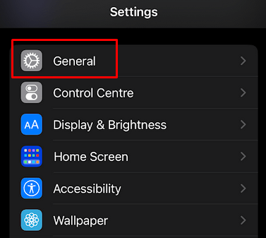 - Go to Settings and then select General.