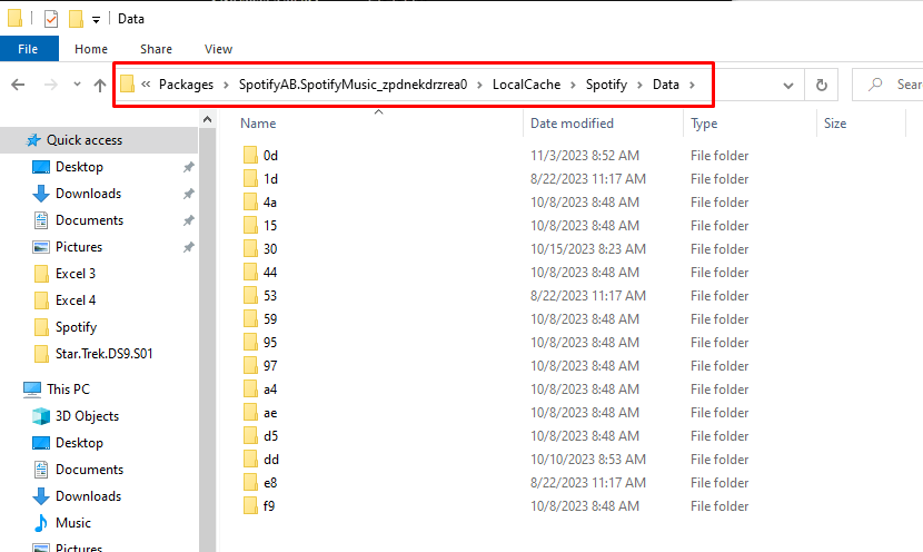 - If you can’t find the Spotify folder you’ll have to do some digging. Go to Packages > SpotifyAB.SpotifyMusic_zpdnekdrzrea0 > LocalCache > Spotify > Data. Then delete all the folders within the Data folder.
