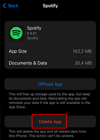 By doing this, you’ll remove all the app data, including the Spotify app itself. Now you’ll have to go to the App Store and reinstall Spotify.