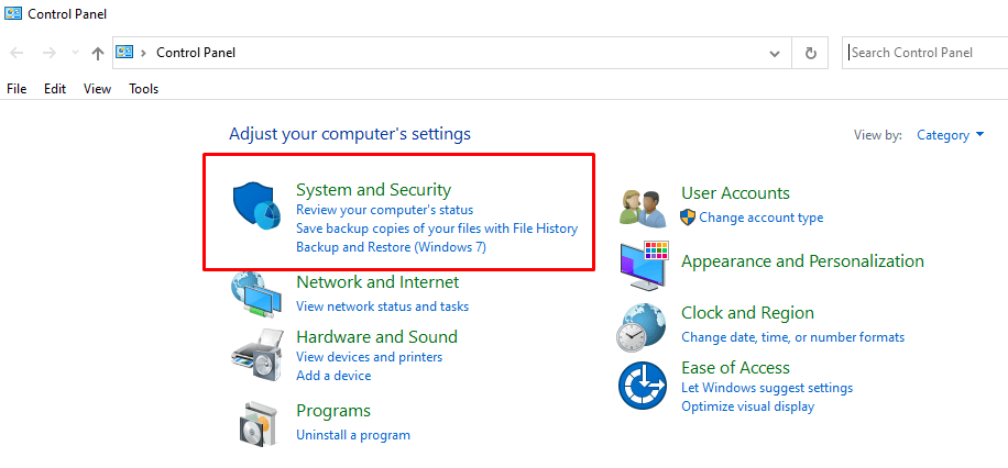 - Select System and Security.