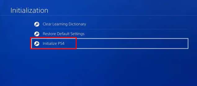 1. Choose Initialize PS4 option.