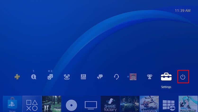 1. In the PS4 Home menu, select the Power button.