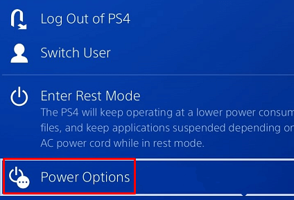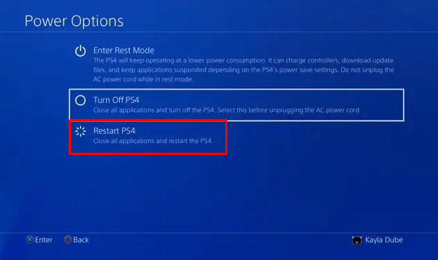 1. When the Power Options menu appears, select Restart PS4.