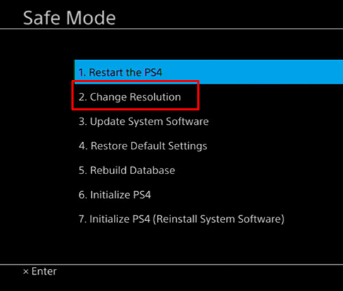 Changing the resolution of your PS4 in safe mode is another effective way to deal with the black screen issue. Safe Mode is a diagnostics mode, so it’ll allow you to access the more advanced features of your PS4 and help you reset the database or upgrade the firmware.