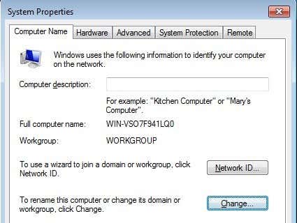 In Windows 7 and higher, click on Start, type in workgroup and then select Change workgroup name. Click on the Change button to change the workgroup name.