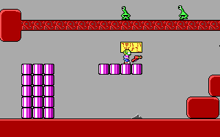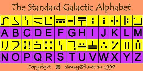 Designed by Tom Hall in Keen 1, the script originated as modified versions of the standard alphabet to create an alien-looking “Exit” sign. He kept creating more similar signs, ultimately ending up with a new version of every English letter, creating the Standard Galactic Alphabet.