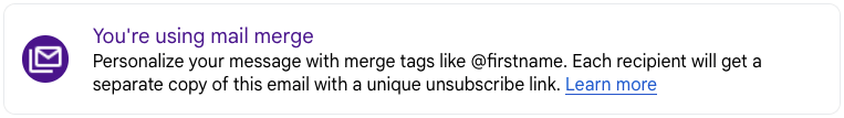 • If a recipient has previously unsubscribed from your messages and you include them in a mail merge, you’ll see a notification after you send the email with the number of recipients who won’t receive the message.
