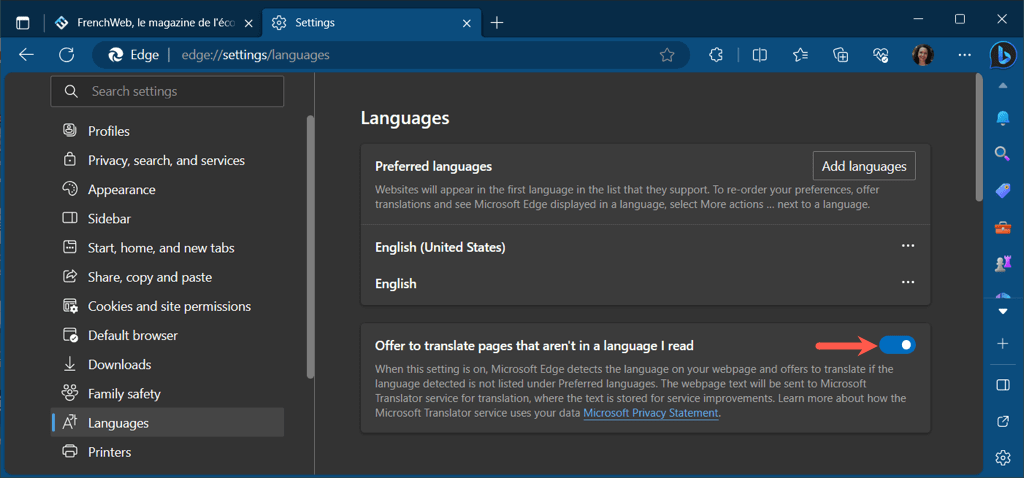 Translate a Web Page in Microsoft Edge