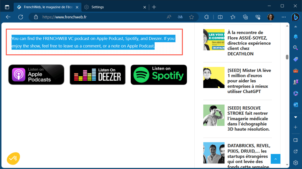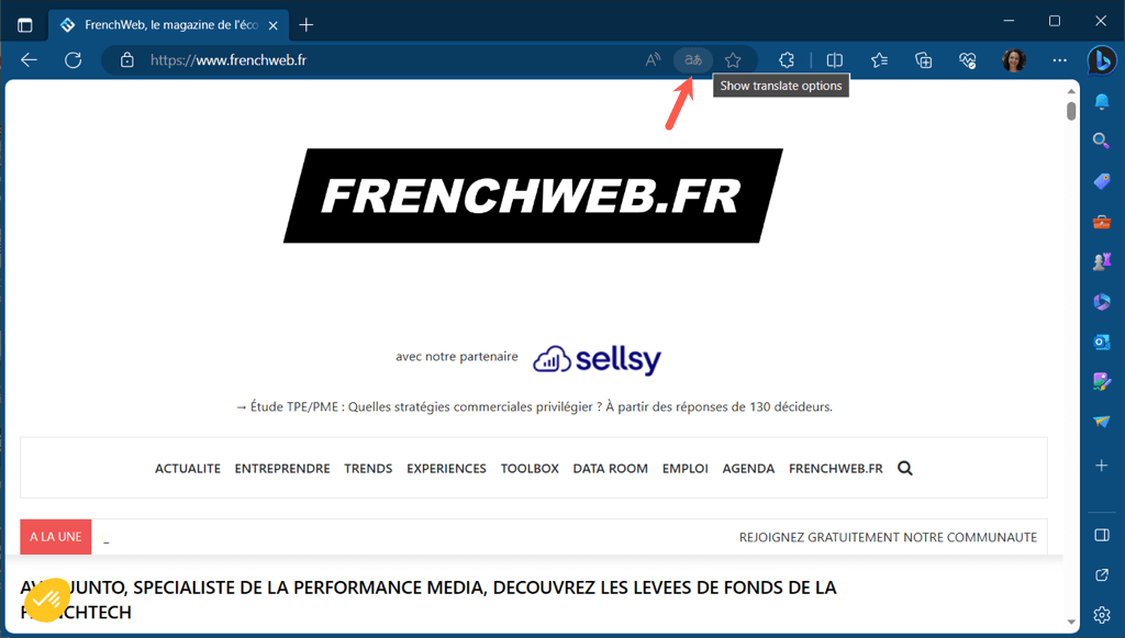 With the built-in translator in Edge, you can also translate part of a web page.