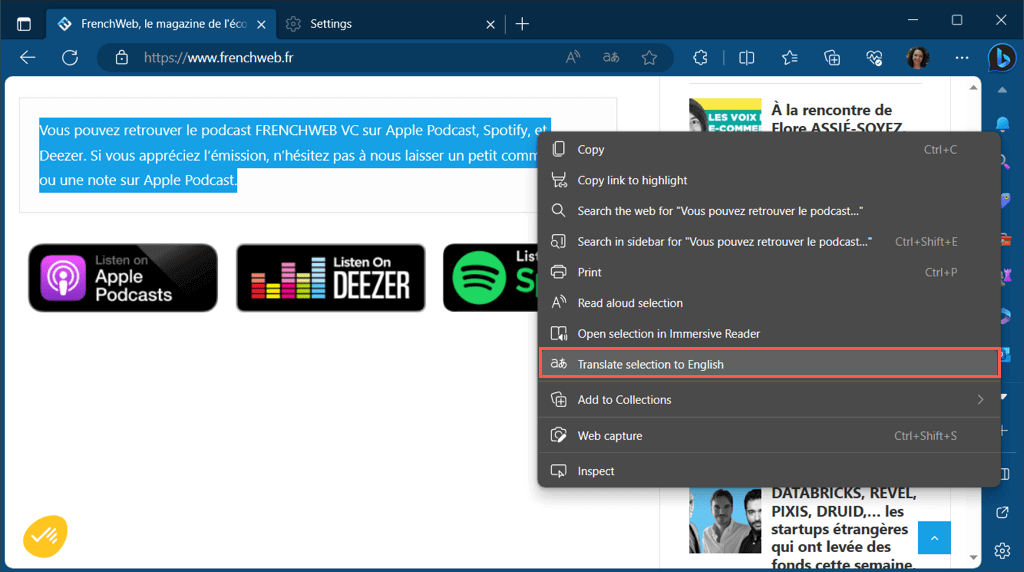Translate Part of a Web Page in Edge