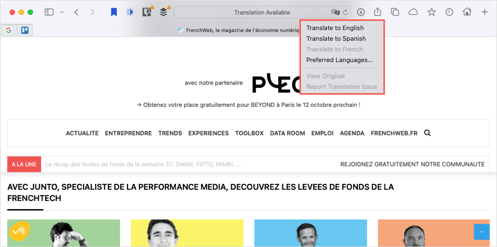 Another browser with its own translation feature is Apple’s Safari web browser.