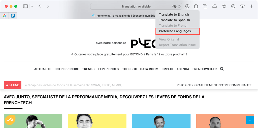 Translate a Web Page in Safari