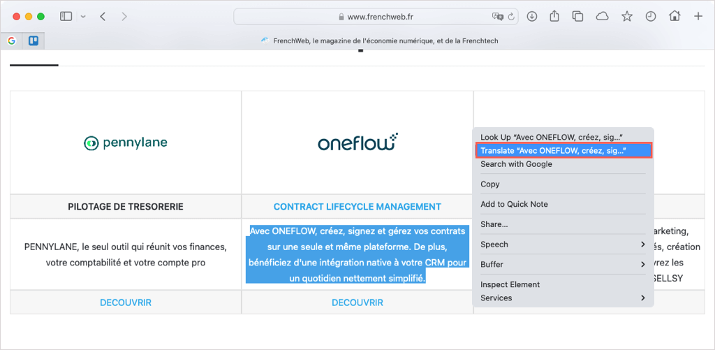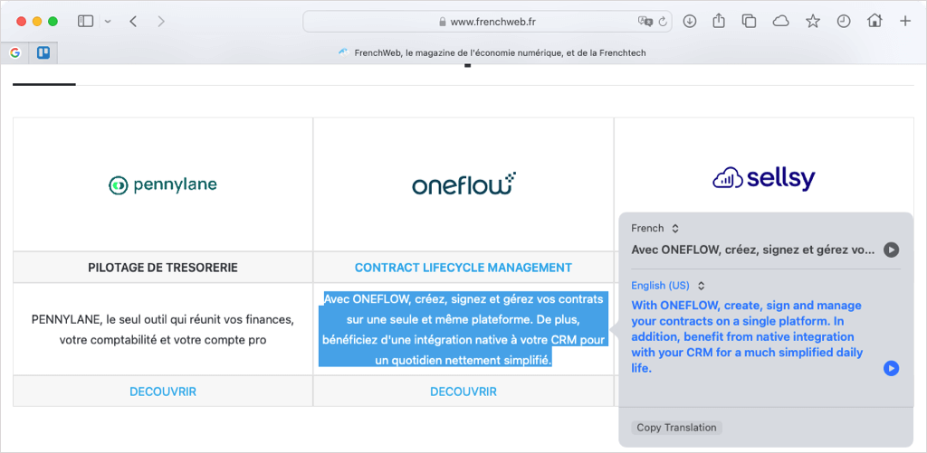 Like the browsers above, you can translate a portion of a web page in Safari as well.