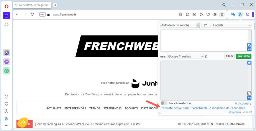 Translate a Web Page in Opera