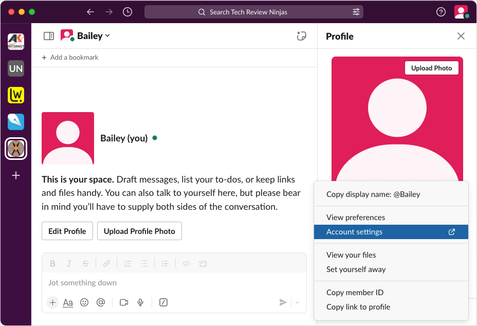 - Follow the same steps as above to access your Slack Account Settings.