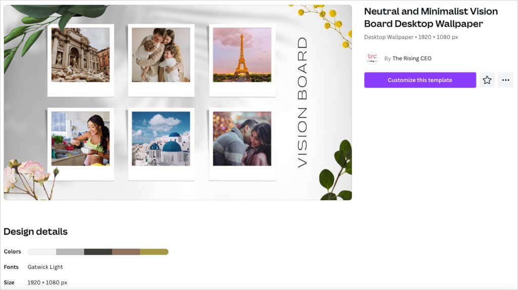 What makes Canva an appealing option, aside from its existing feature set, is that it offers vision board templates. This saves you time from creating a vision board from scratch but also allows you to customize your board most any way you like.