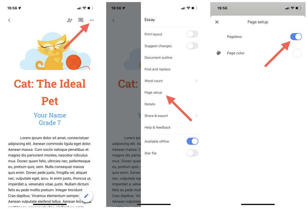 To enable and disable Pageless format on the mobile version of Google Docs, you must: