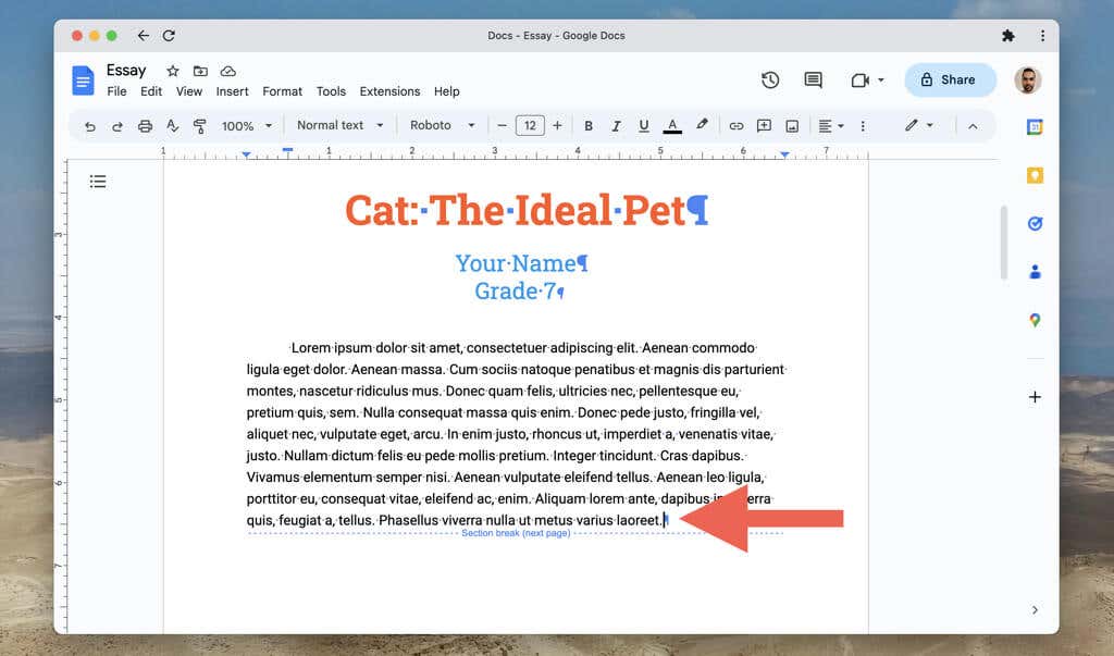Like Microsoft Word, Google Docs on desktop devices allow you to add section breaks to documents. There are two types of section breaks: