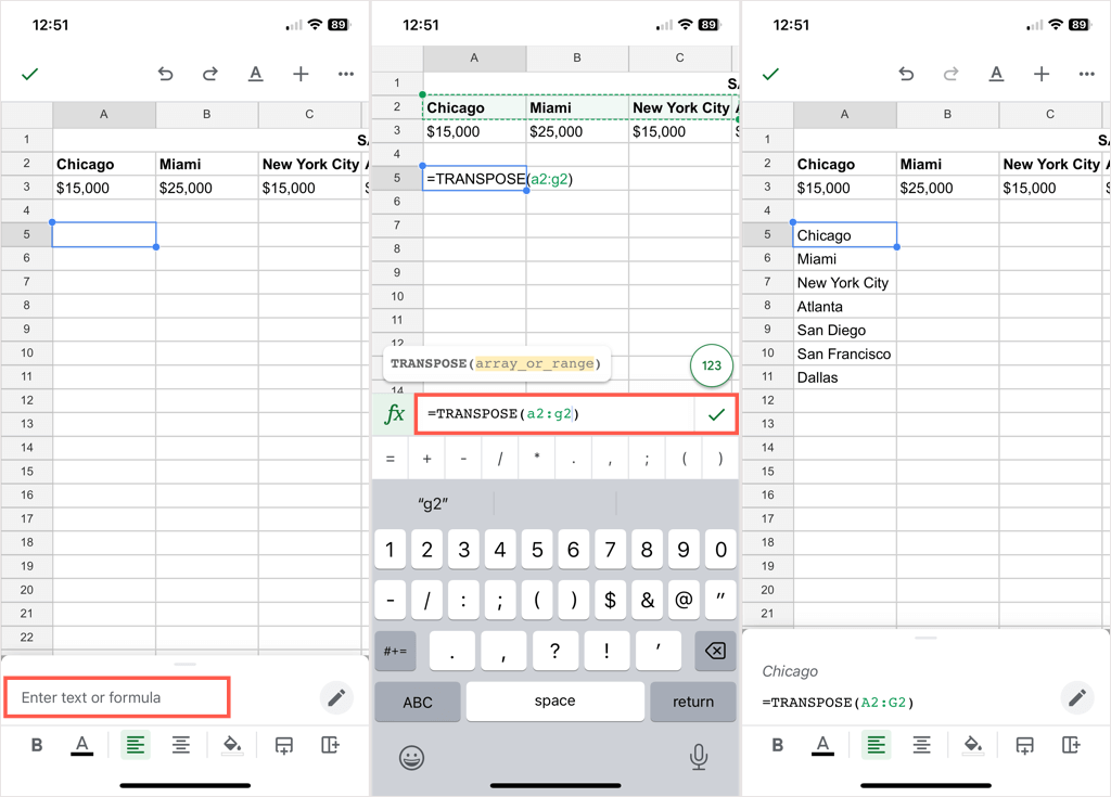 If you prefer to use the TRANSPOSE function on Android, follow the steps below as they are the same on iPhone.