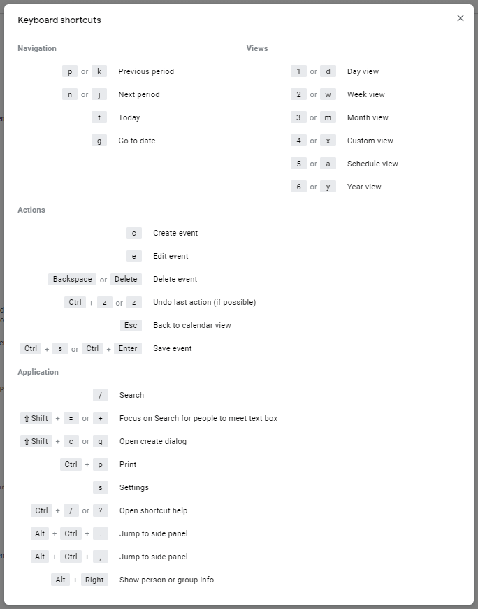 How to View a List of All the Keyboard Shortcuts for Google Calendar image - 14ShortcutList