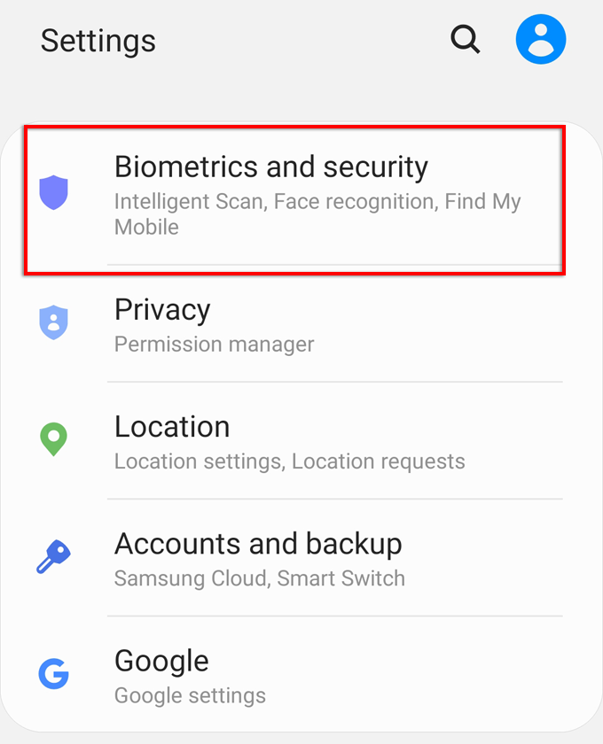 2. Tap on Biometrics and Security