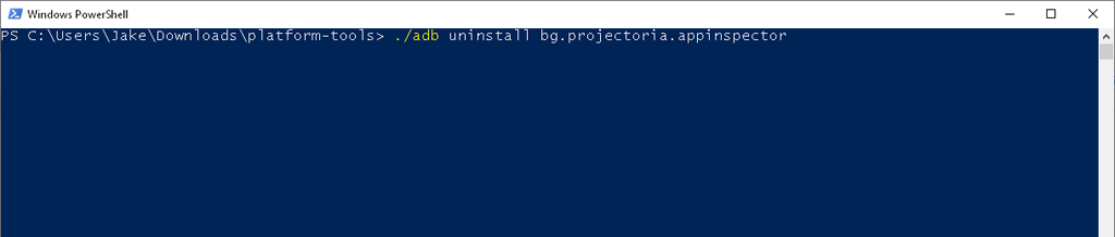 For example, if you want to uninstall App Inspector, you would type: