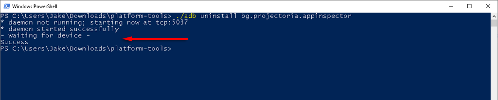 If successful, the window should display a message saying “Success.” And that’s it – your app will now be uninstalled.