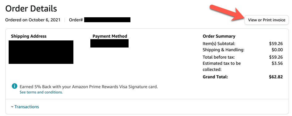 How to Access Amazon Invoices from a List of All Transactions