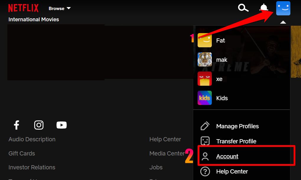 1. Sign in to your Netflix account on a web browser. Tap your profile icon in the top-right corner and select Account in the drop-down menu.