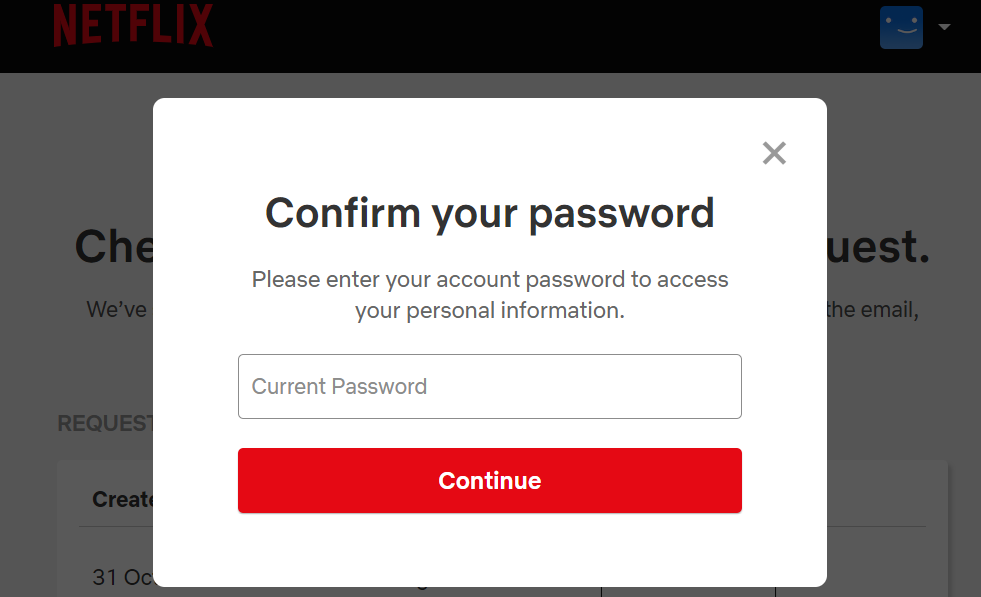 1. Enter your Netflix account password to proceed.