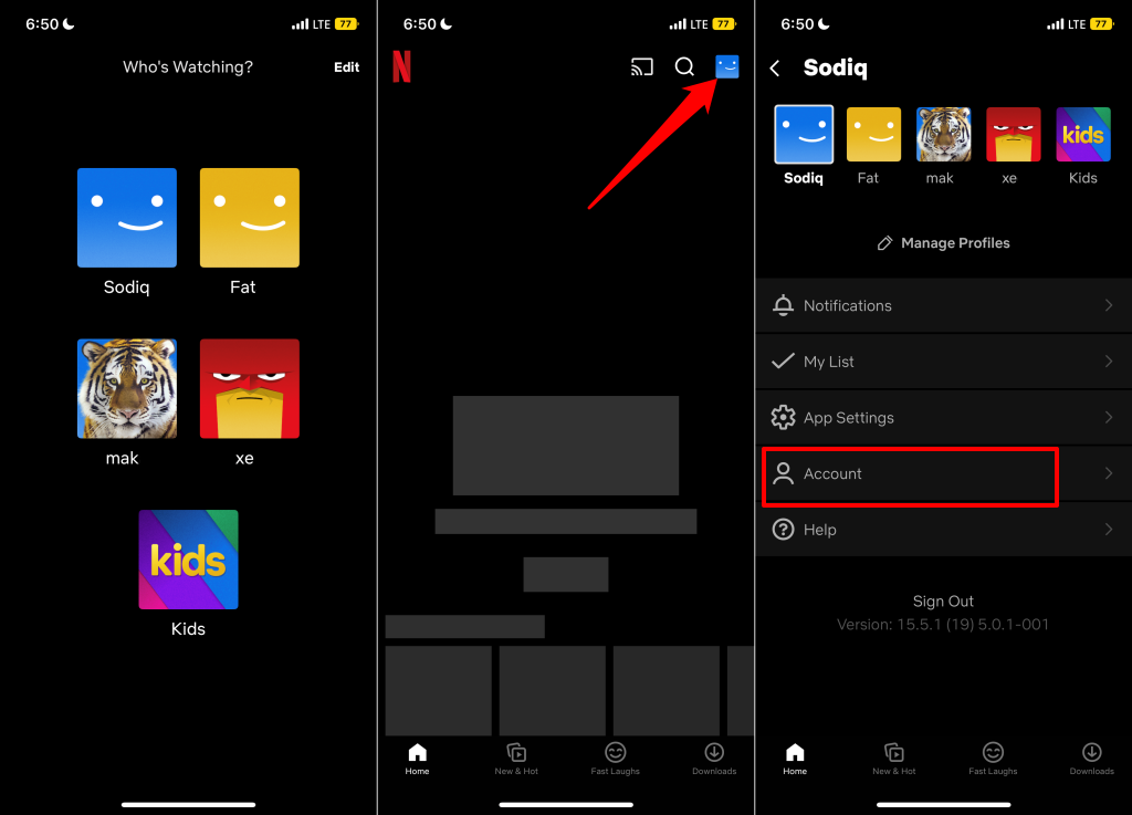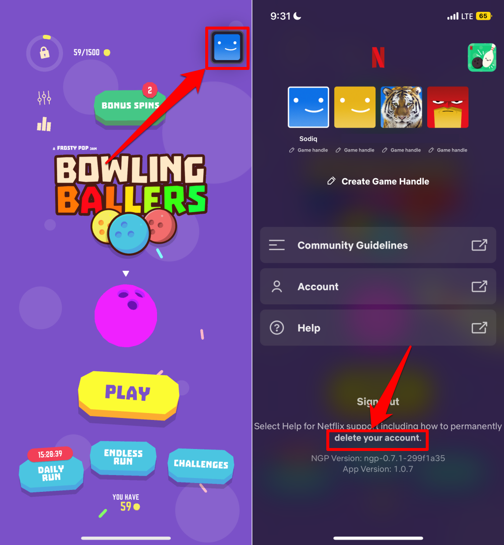 You can also delete your account in any Netflix game app. Open a Netflix game app on your Android or iOS smartphone and follow the steps below.